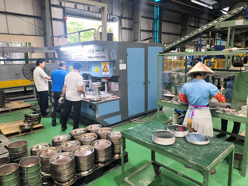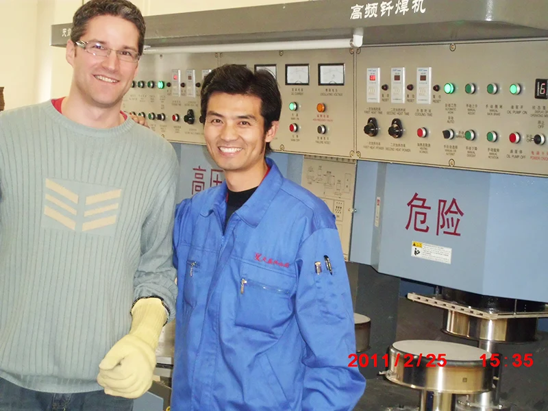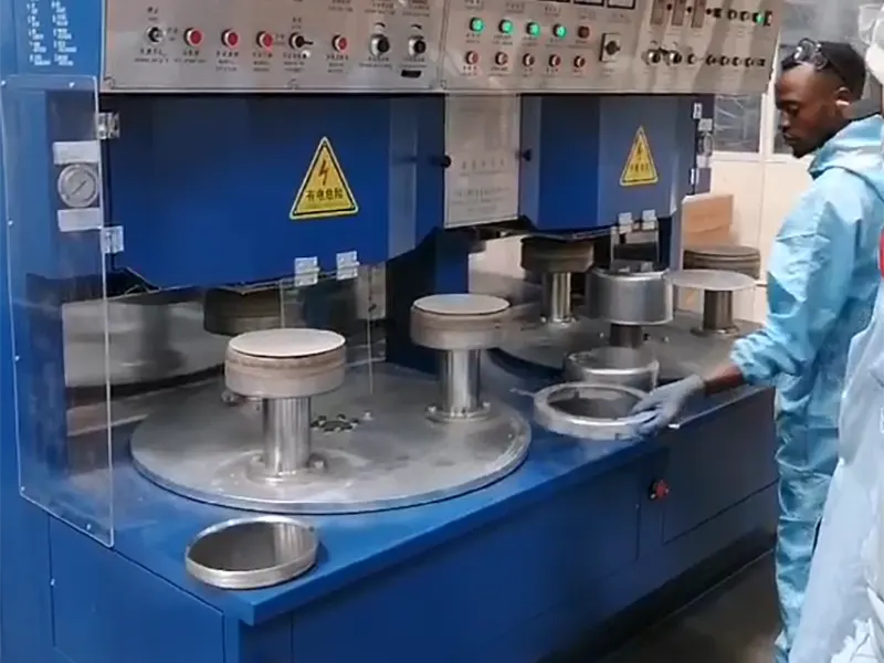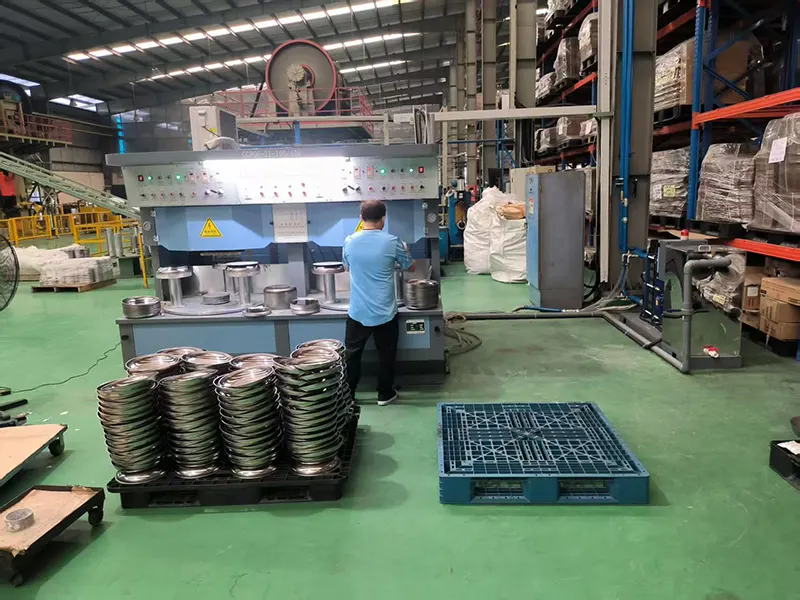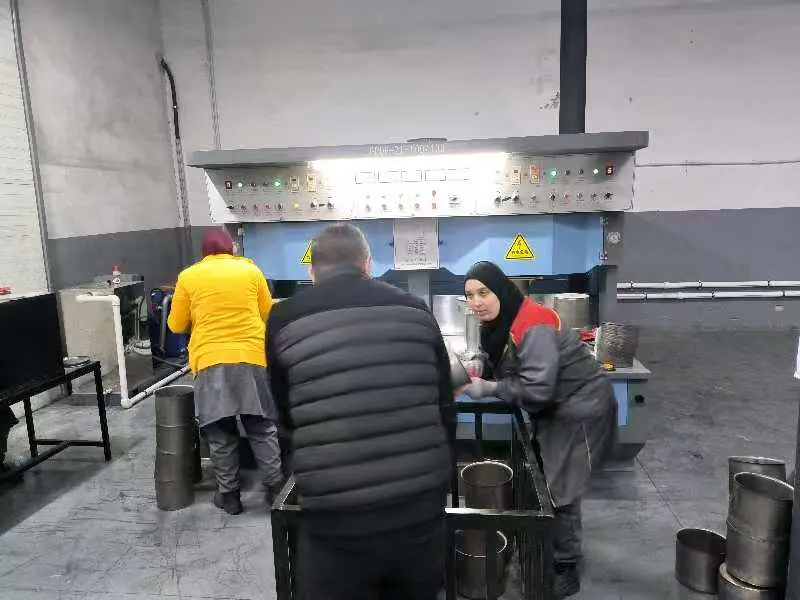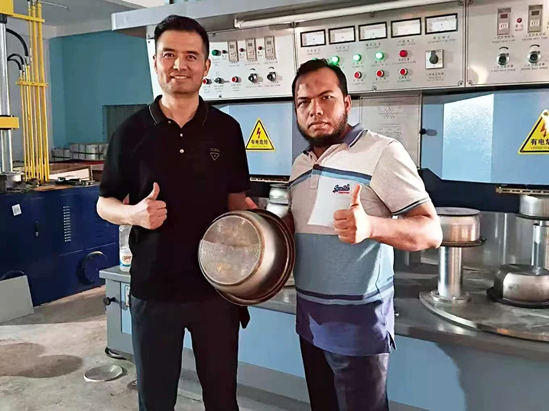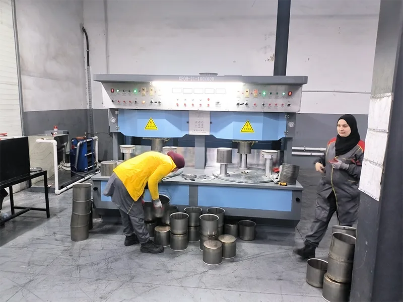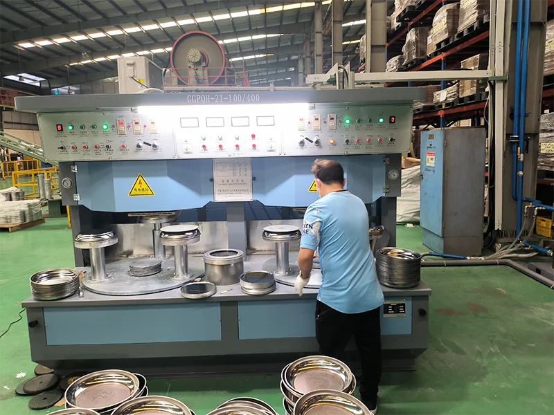 တောင်ကိုးရီးယား ဖောက်သည်တစ်ဦး၏ အစိုင်အခဲ-စတိတ် ဘရိတ်ဖမ်းစက်ကို သံမဏိအိုးများ ထုတ်လုပ်ရန် အသုံးပြုလျက်ရှိသည်။