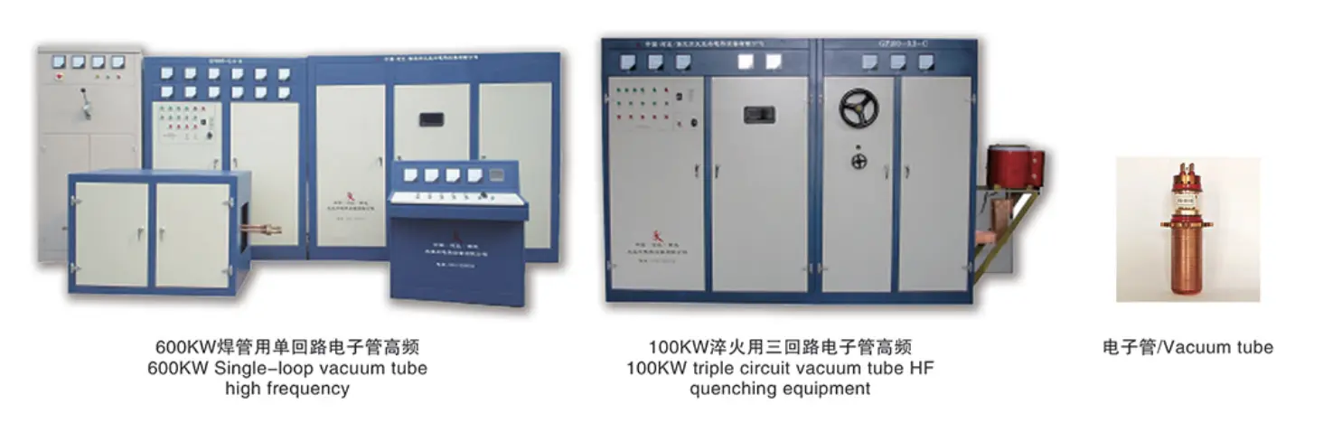အောက်ပါဓာတ်ပုံများသည် 600KW single-loop vacuum tube high frequency နှင့် 100KW triple circuit vacuum tube HF quenching equipment တို့ဖြစ်သည်။