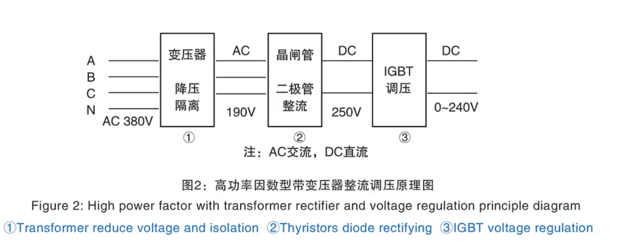 1. ဗို့အားထိန်းညှိမှုဖြင့် အမျိုးအစားခွဲခြားထားသည်- Thyristors (SCR) ကို တစ်ပြိုင်နက်တည်း ပြုပြင်ခြင်းနှင့် ဗို့အားထိန်းညှိခြင်းတို့ကို ပြီးမြောက်ရန်၊ သို့မဟုတ် ဦးစွာ diode သို့မဟုတ် thyristors များကို ပြုပြင်ရန်အတွက် အသုံးပြုပြီးနောက် IGBT ထိန်းညှိဗို့အားကို အသုံးပြုနိုင်သည်။ IGBT ထိန်းညှိဗို့အားကိုအသုံးပြုခြင်းသည် စက်ပစ္စည်းအချက်အလတ်များ တိုးတက်စေရန်အတွက်ဖြစ်သည်။ လျှပ်စစ်ကို ချွေတာနိုင်ပြီး ဂဟေဆက်ခြင်းအရည်အသွေးကို ပိုမိုတိုးတက်စေပါသည်။